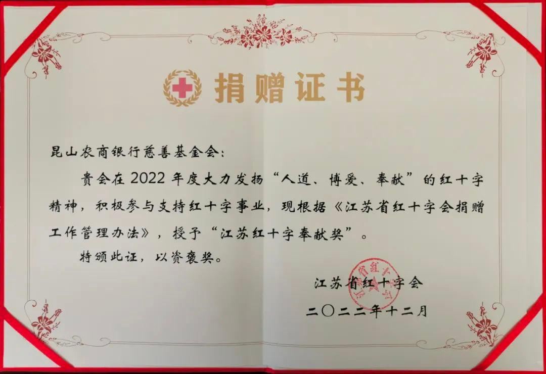 昆山農(nóng)商銀行慈善基金會(huì)被表彰為“江蘇省紅十字奉獻(xiàn)獎(jiǎng)”