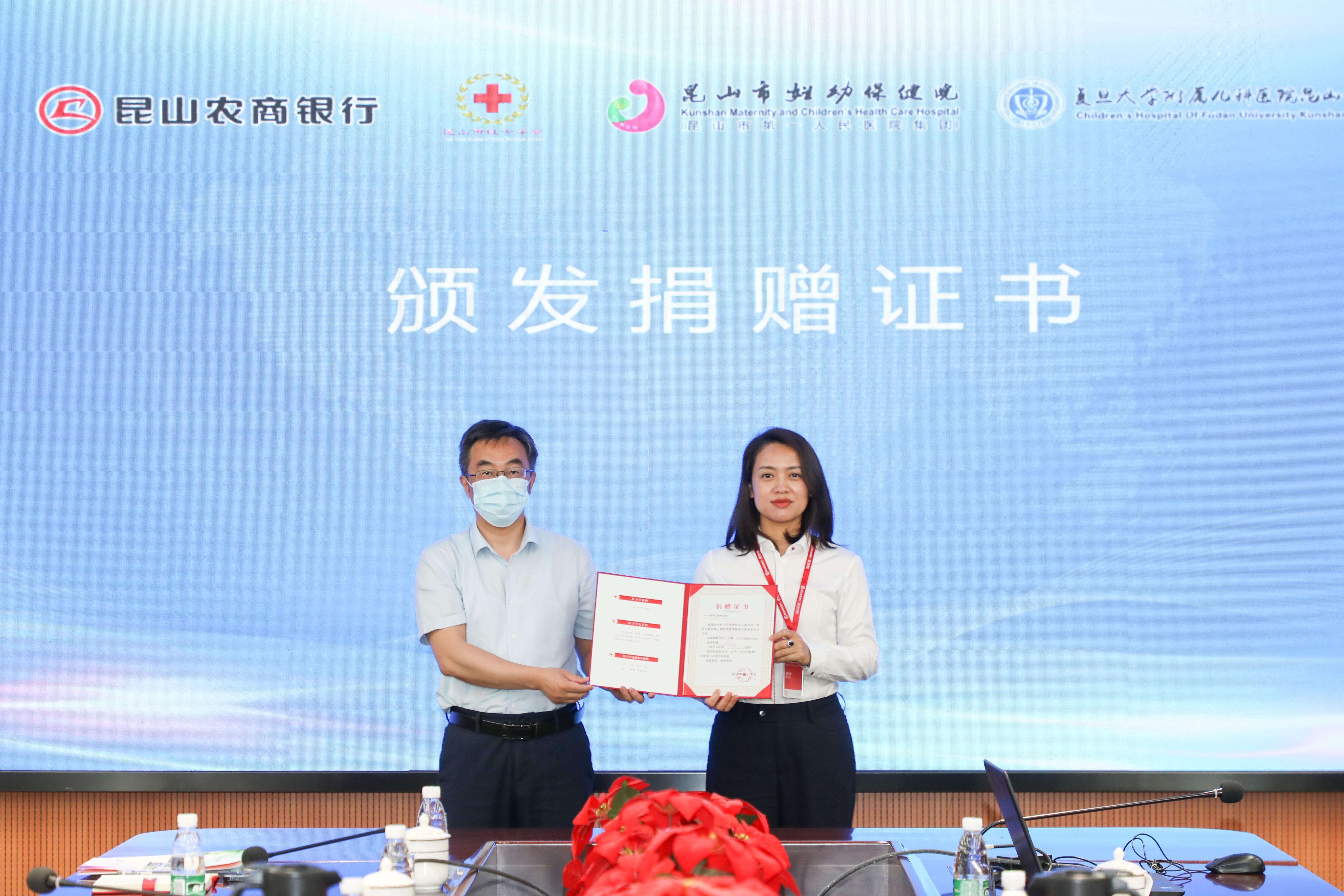 啟動儀式上市婦幼保健院代表介紹了項目資金使用流程、與會三方共同簽署了捐贈協(xié)議書、昆山市紅十字會向昆山農(nóng)商銀行慈善基金會頒發(fā)了捐贈證書。