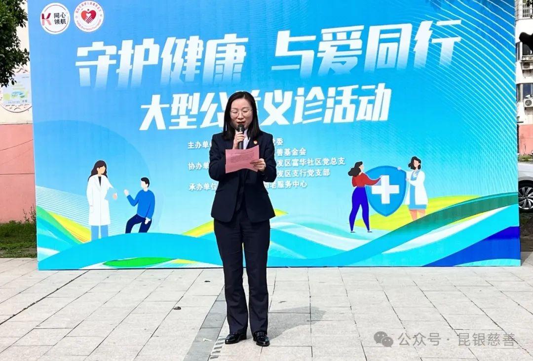 姜明惠感謝開發(fā)區(qū)富華社區(qū)黨總支對本次活動的大力支持,感謝醫(yī)生團隊帶著滿腔的熱情和愛心,為居民朋友們提供健康咨詢和診療服務。健康是生命之根,幸福之源。我們深知,對于每一位社區(qū)居民,特別是老年朋友來說,健康的重要性。然而,隨著年齡的增長,身體的各種機能逐漸衰退,加之日常生活中可能遇到的各種困難和不便,使得大家更加需要被關注和呵護。為此,昆山農(nóng)商銀行黨委、慈善基金會聯(lián)合各方力量,開展“守護健康與愛同行”大型公益義診系列活動,希望通過這樣的活動,將關愛和溫暖送到每一位社區(qū)居民的心坎上,讓大家在家門口就能享受到優(yōu)質的醫(yī)療服務。