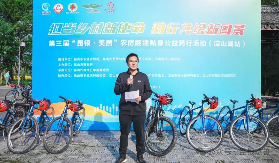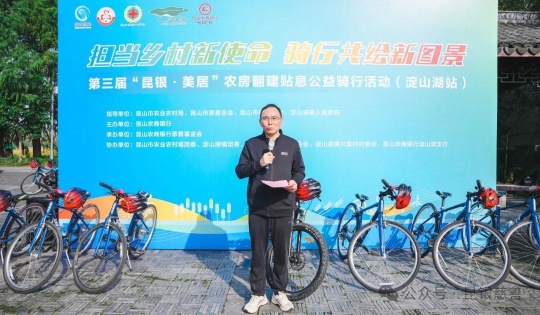 11月2日,由昆山市農(nóng)業(yè)農(nóng)村局、昆山市慈善總會、昆山市紅十字會、淀山湖鎮(zhèn)人民政府指導(dǎo),昆山農(nóng)商銀行主辦,昆山農(nóng)商銀行慈善基金會承辦的第三屆“昆銀·美居”農(nóng)房翻建貼息淀山湖站公益騎行活動成功舉行。