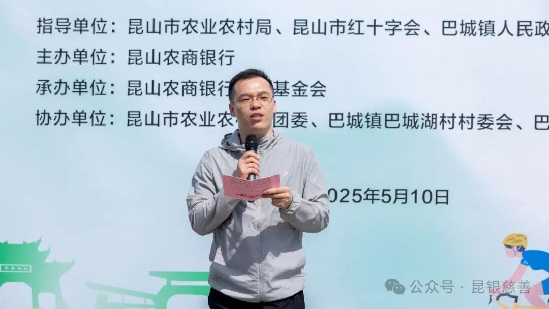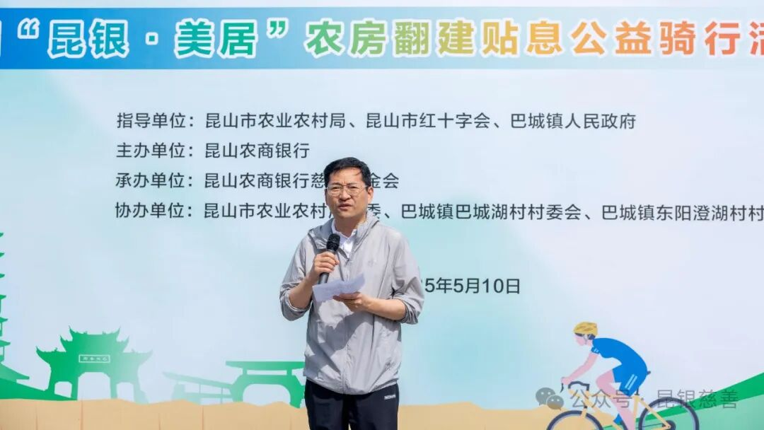 5月10日,由昆山市農(nóng)業(yè)農(nóng)村局、昆山市紅十字會(huì)、巴城鎮(zhèn)人民政府指導(dǎo),昆山農(nóng)商銀行主辦,昆山農(nóng)商銀行慈善基金會(huì)承辦的第四屆“昆銀·美居”農(nóng)房翻建貼息巴城站公益騎行活動(dòng)成功舉行。昆山市農(nóng)業(yè)農(nóng)村局黨組成員、副局長(zhǎng)袁繼棟,昆山市紅十字會(huì)黨組書(shū)記、常務(wù)副會(huì)長(zhǎng)黃翊,巴城鎮(zhèn)黨委委員、政法書(shū)記殷宏,昆山農(nóng)商銀行黨委委員、副行長(zhǎng)徐怡,昆山農(nóng)商銀行慈善基金會(huì)理事長(zhǎng)章愛(ài)軍以及40多名騎行愛(ài)好者參加活動(dòng)。